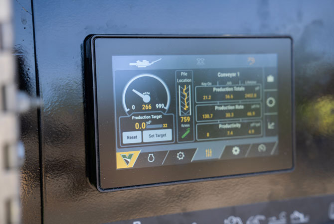 An industry-leading, full-function, wireless remote control lets you, from the cab, adjust machine settings as conditions change, including control of the infeed settings, engine droop, conveyor height and more.
