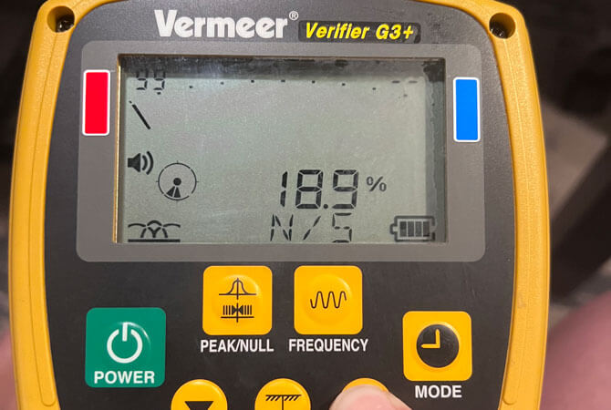 The Vermeer Verifier™ G3+ locator offers operators three locating modes: peak, peak/null and null. The operator-friendly screen, at a glance, shows the accuracy of peak mode combined with the speed of null mode.