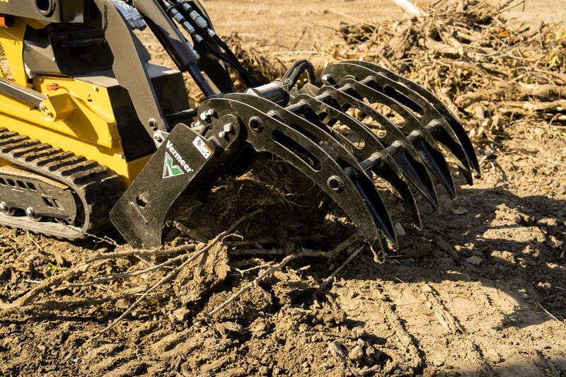 The Vermeer root rake grapple attachment is the ultimate cleanup tool for tree care professionals. This attachment is engineered to rip out roots, clear debris and rake jobsites.