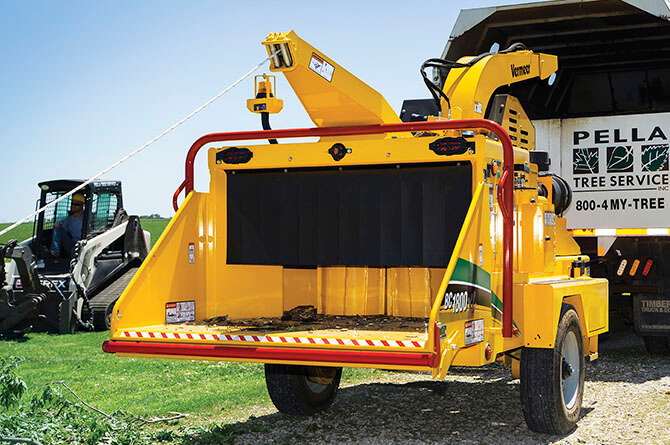 El control remoto opcional Tree Commander™ aumenta la actividad de la obra activando la operación por control remoto de las funciones de la astilladora y puede sujetarse cómodamente al cinturón del operador o montarse en una minicargadora Vermeer.