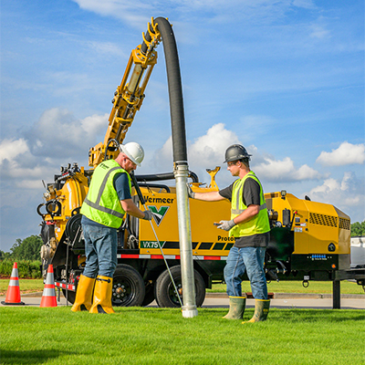During the cutting process, a vacuum system attached to the cutter wheel housing removes dry, dusty debris from the site, keeping the work area clean. After the conduit is placed in the trench, it is backfilled with a grout compound to secure it in place.