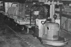 Before we get into that, here’s a quick rundown on the history of these handy cart-moving robots and the technology behind them. AGVs have been around since the early 1950s – back then, they were guided by a set path of wires on the floor. AGVs continued with methods like wire, tape lines and painted lines for the next 60 years. Within the past 15 years, they've adopted much of the same technology now used in self-driving cars. This navigation allows AGVs to detect when an obstruction is in their path, causing them to stop. However, they ultimately still follow a fixed path.